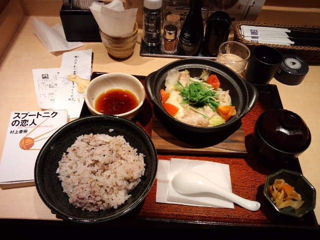 四元豚とたっぷり野菜の蒸し鍋定食(雑穀米大盛)