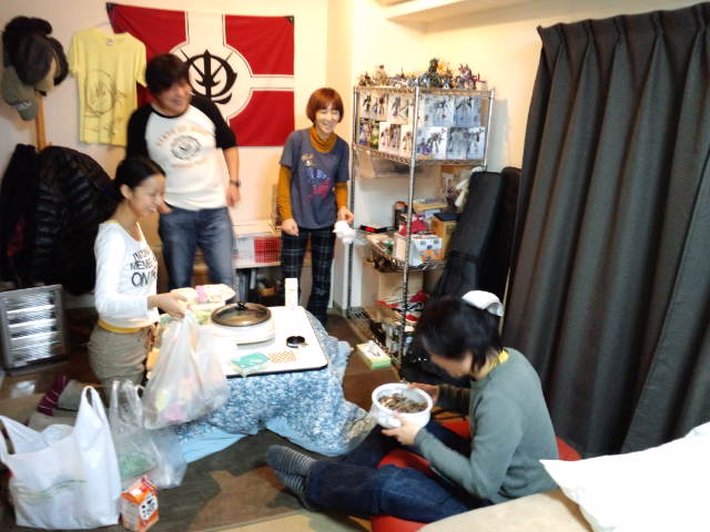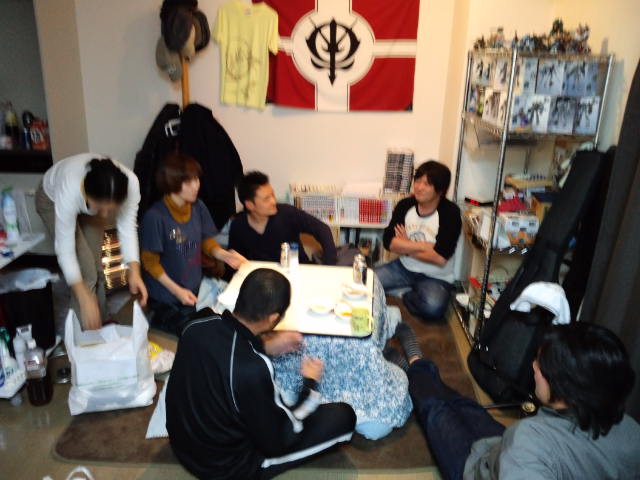 忘年会終了間際、寛ぐ皆様&テキパキ片付けをこなす八木ちゃん。八木ちゃんホンマに感謝感謝です~。