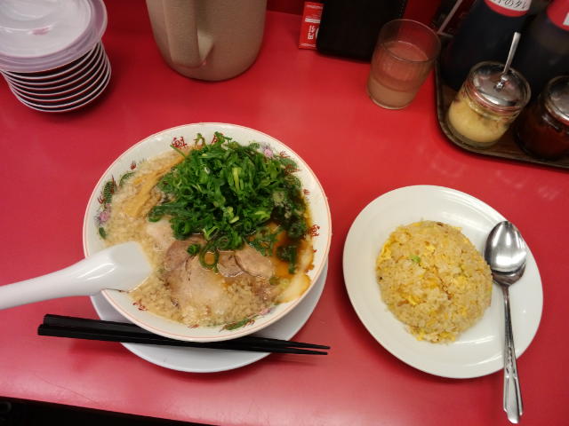 ラーメン&チャーハン定食 麺堅め、ネギ多め